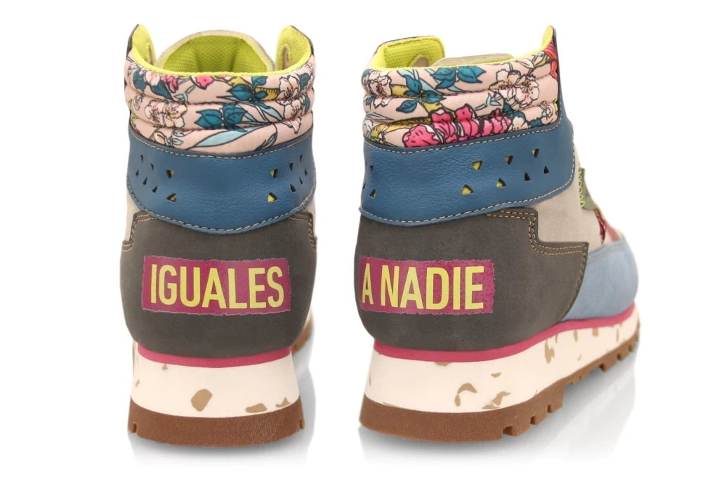 • Capellada simil gamuzon hielo y cuello en microfibra estampada.