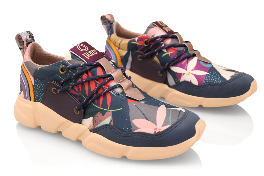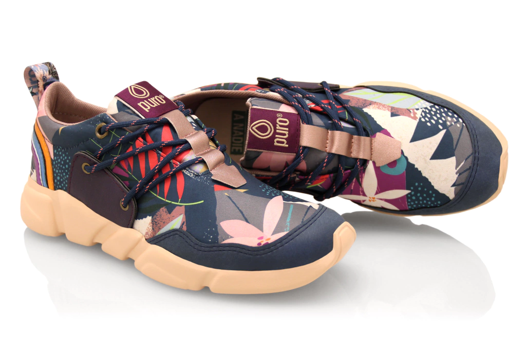 • Capellada y lengua en tela de microfibra reforzada estampada